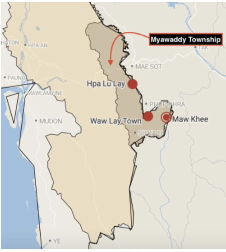 The situation in Karen State has been intensifying with non-stop fighting since March 18th, when KNU issued an official statement for everyone affiliated with the SAC to leave KNU territories. Kawkareik, Myawaddy, and Lay Kay Kaw have been the focal areas of conflict over the past few weeks. With indiscriminate shelling and airstrikes in these areas, an influx of displaced populations has been reported on the Thai-Myanmar border with over 150,000 people displaced in Karen State alone.