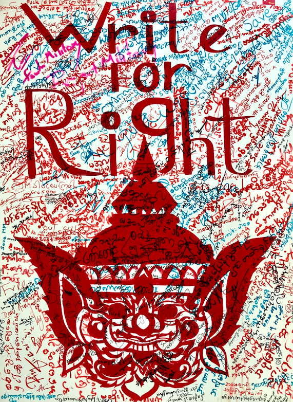Some of the texts are so beautiful, and some are really hilarious and insulting to the military! I'm happy that I made it. Every day the situations changes, the voice of the people who asked to write the posters changes, and the handwriting of the people on the canvas as well, it is all changing and it directly reflects the voices of the people at that time.